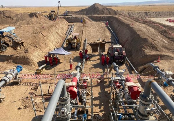 Construction of 28 km 10″ gas flowline network from well pads KM13, KM14, KM15, KM16, and KM17 to manifold area.