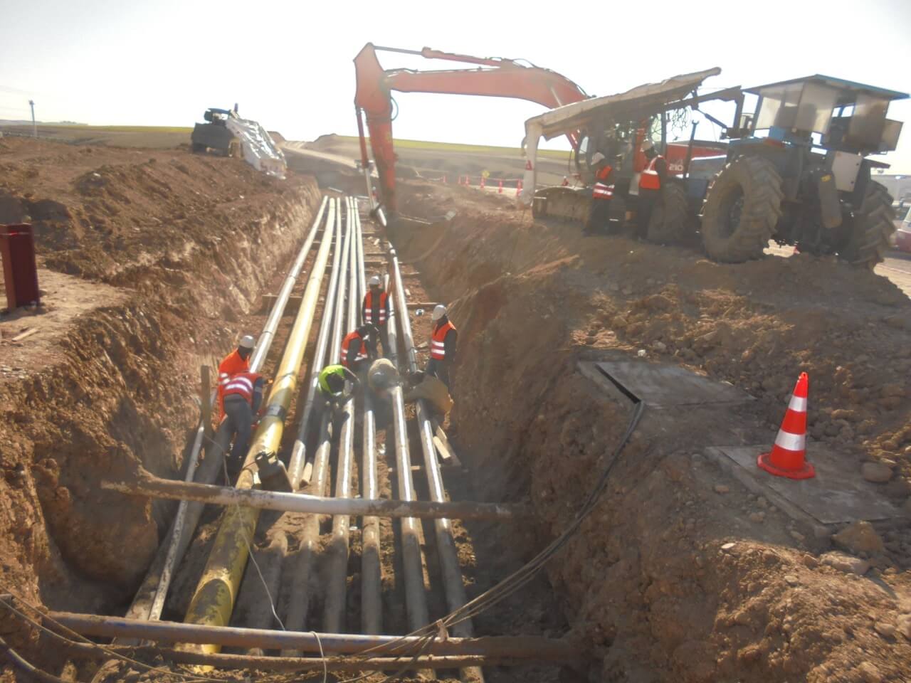 Gathering system including 50km of buried pipelines and flowlines of different sizes (6″, 8″, 12″ and 16″), fiber optic cable laying, cathodic protection and 9 well head hook-ups.